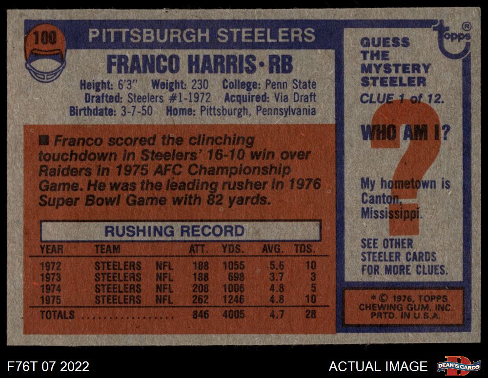 1976 Topps #100 Franco Harris 4 - VG/EX