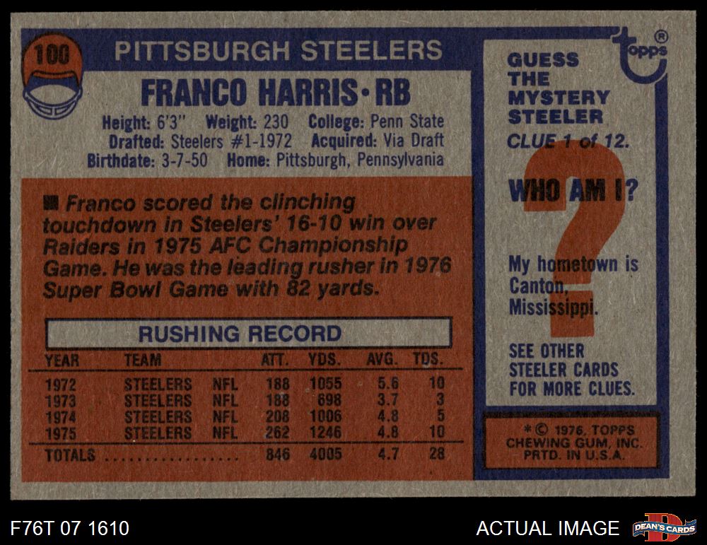 1976 Topps #100 Franco Harris 6 - EX/MT