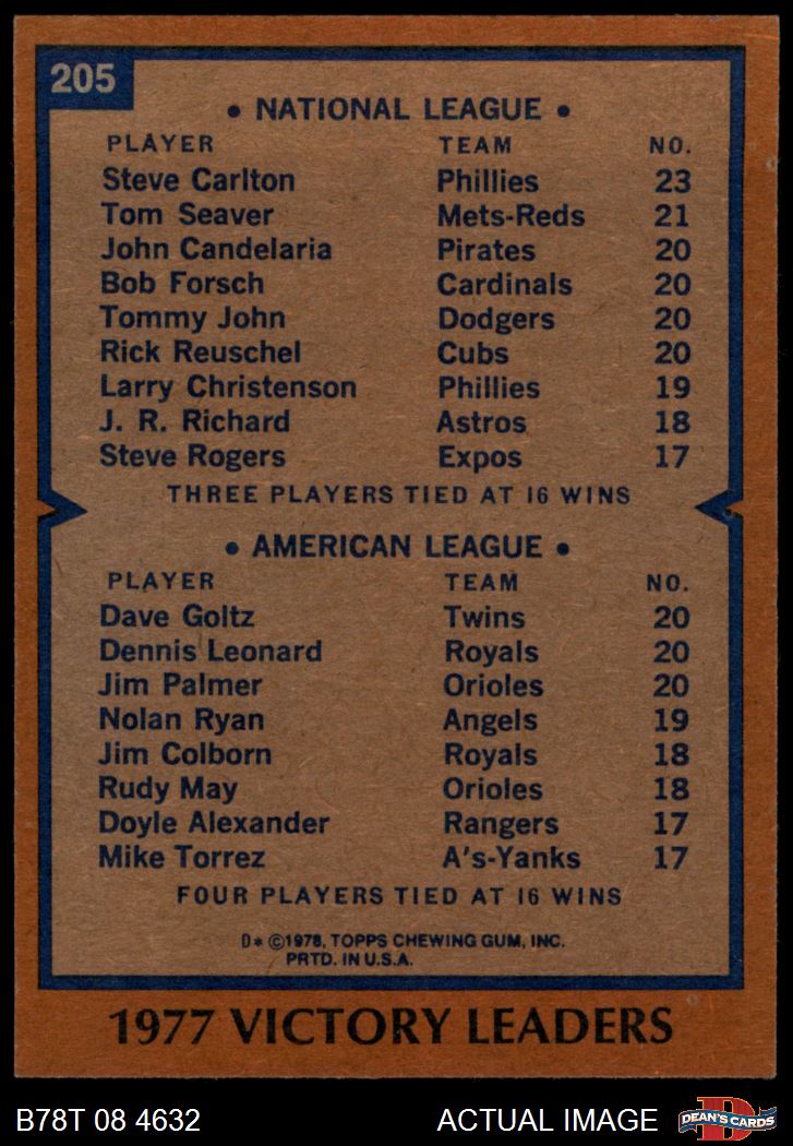 1978 Topps #205 - Steve Carlton / Jim Palmer / Dave Goltz / Dennis Leonard Pitching Leaders 7 - NM