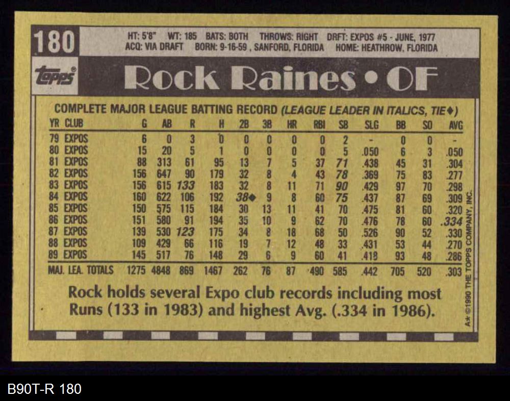 1990 Topps #180 Tim Raines