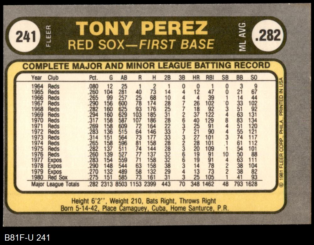 1981 Fleer #241 Tony Perez 8 - NM/MT