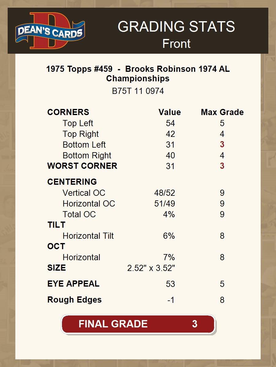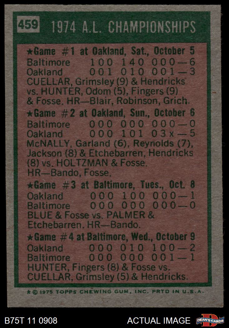 1975 Topps #459 - Brooks Robinson 1974 AL Championships 3 - VG