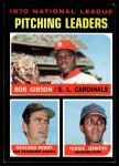 1971 Topps #70 - Bob Gibson / Fergie Jenkins / Gaylord Perry NL Pitching Leaders 4 - VG/EX