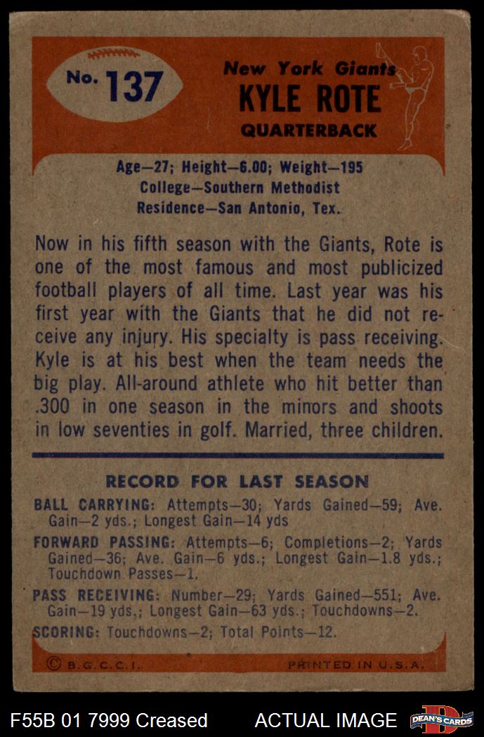 1955 Bowman #137 Kyle Rote 2 - GOOD