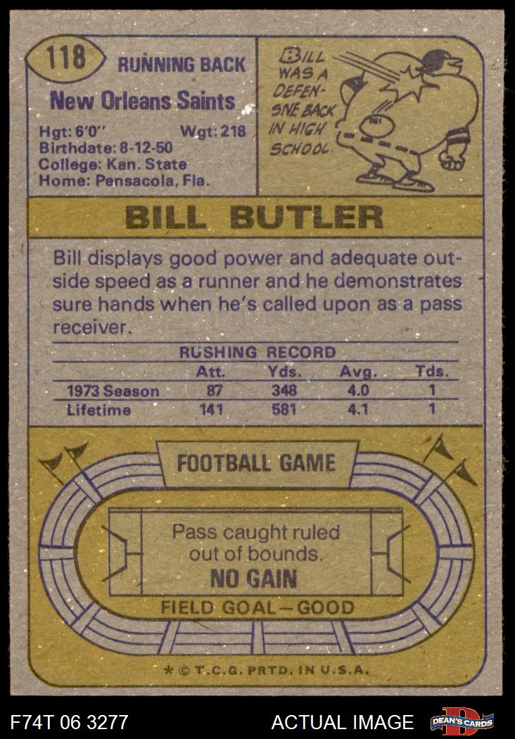 1974 Topps #118 Bill Butler 4 - VG/EX