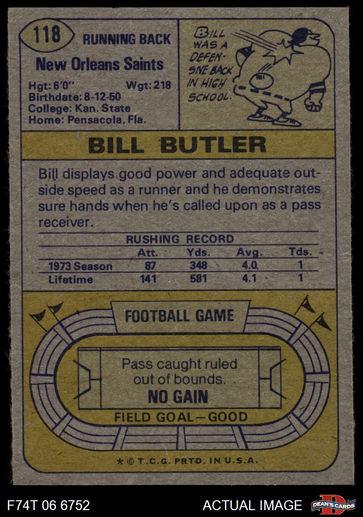 1974 Topps #118 Bill Butler 5.5 - EX+