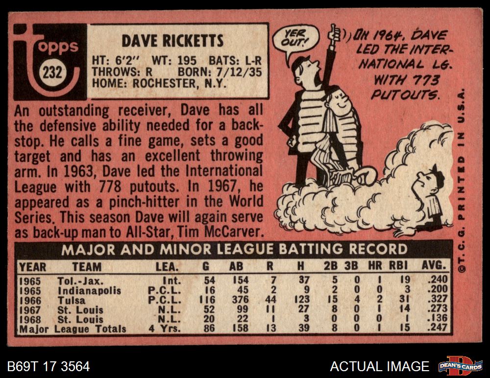 1969 Topps #232 Dave Ricketts 1.5 - FAIR