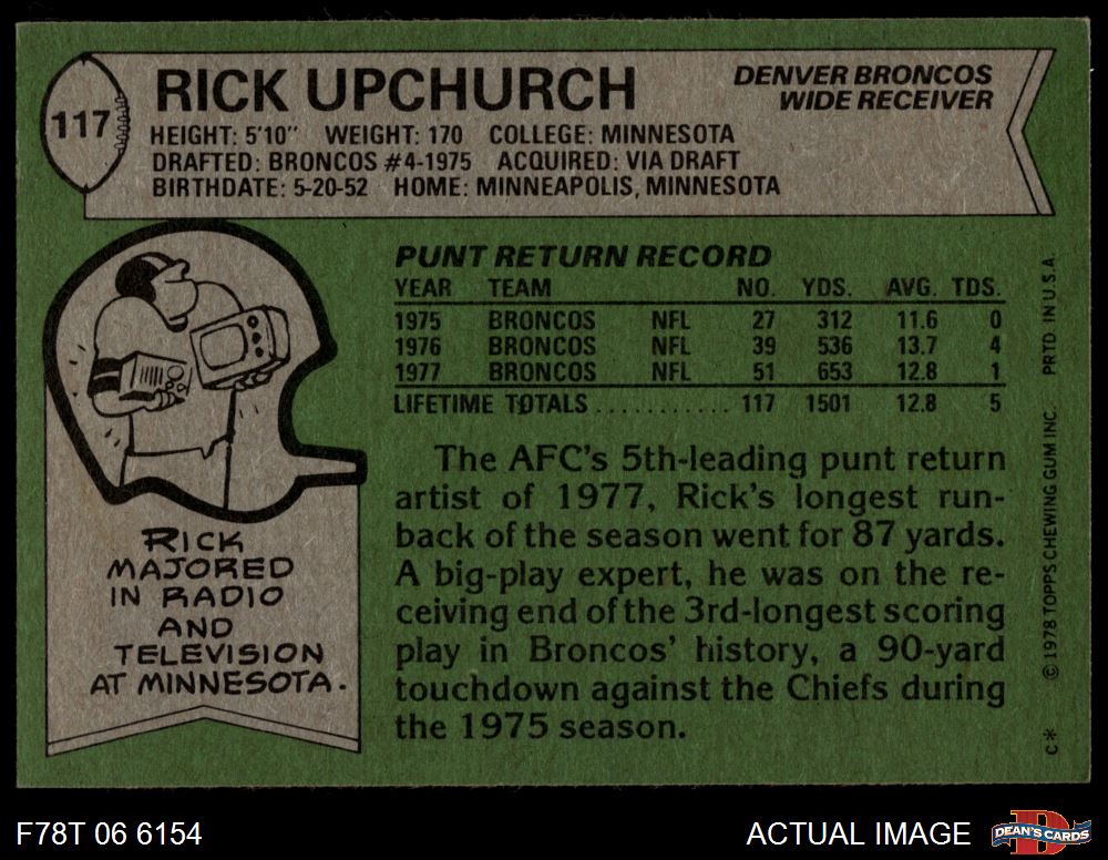 1978 Topps #117 Rick Upchurch 6.5 - EX/MT+