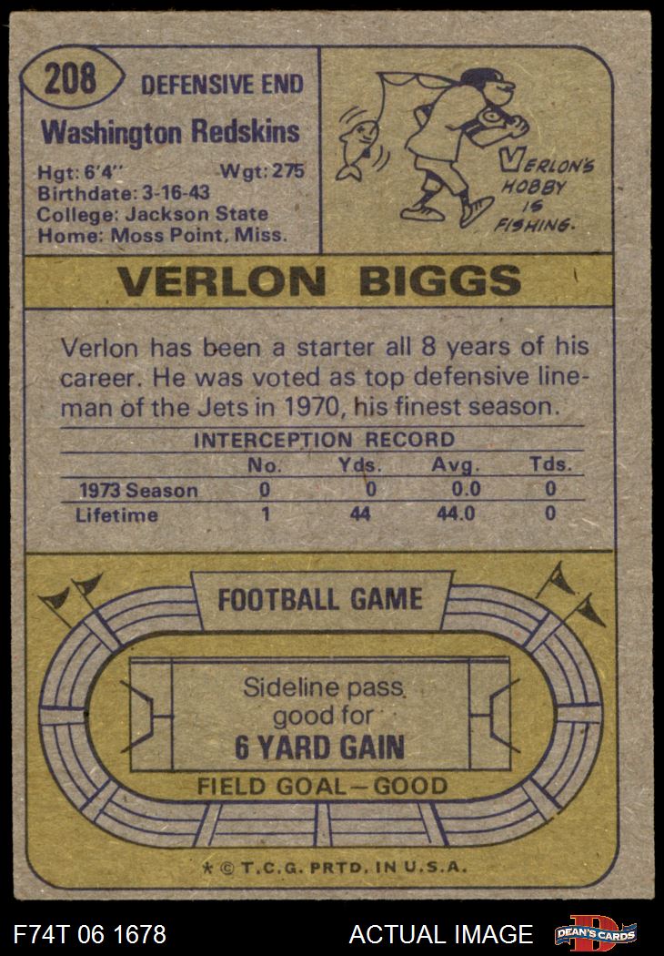 1974 Topps #208 Verlon Biggs 4 - VG/EX