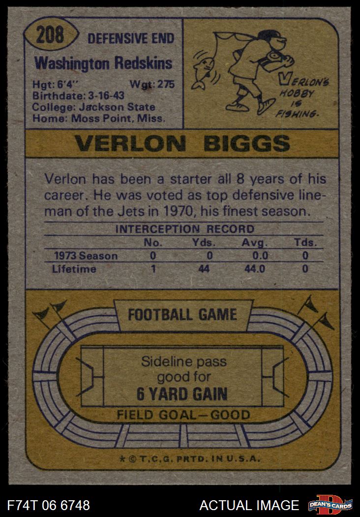 1974 Topps #208 Verlon Biggs 8 - NM/MT