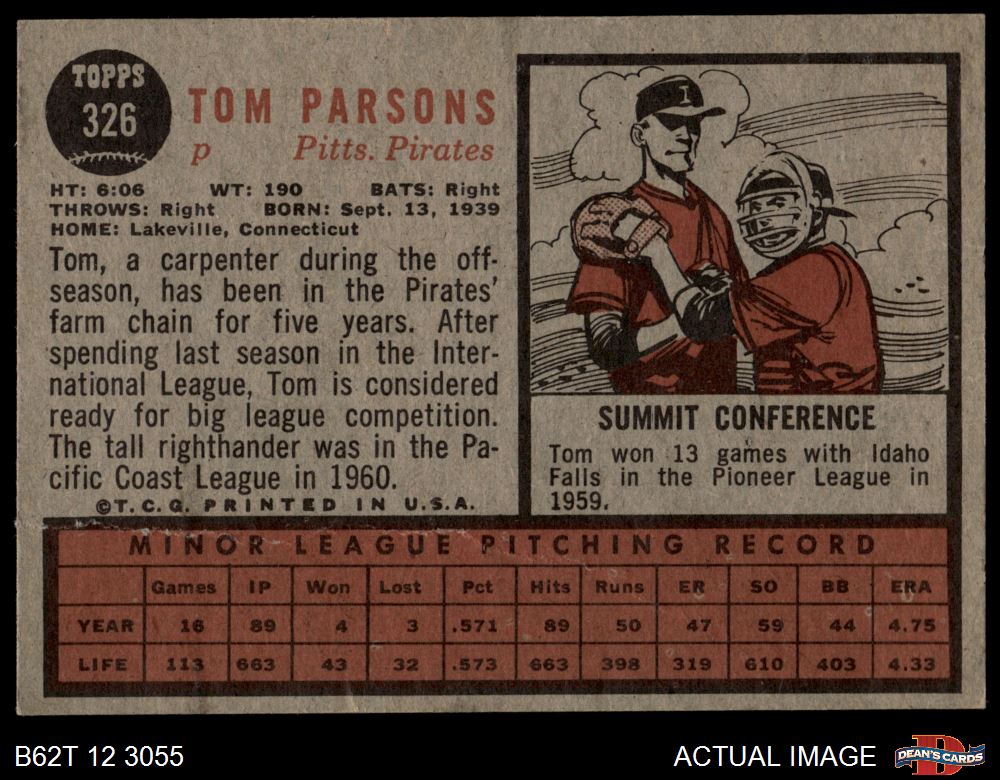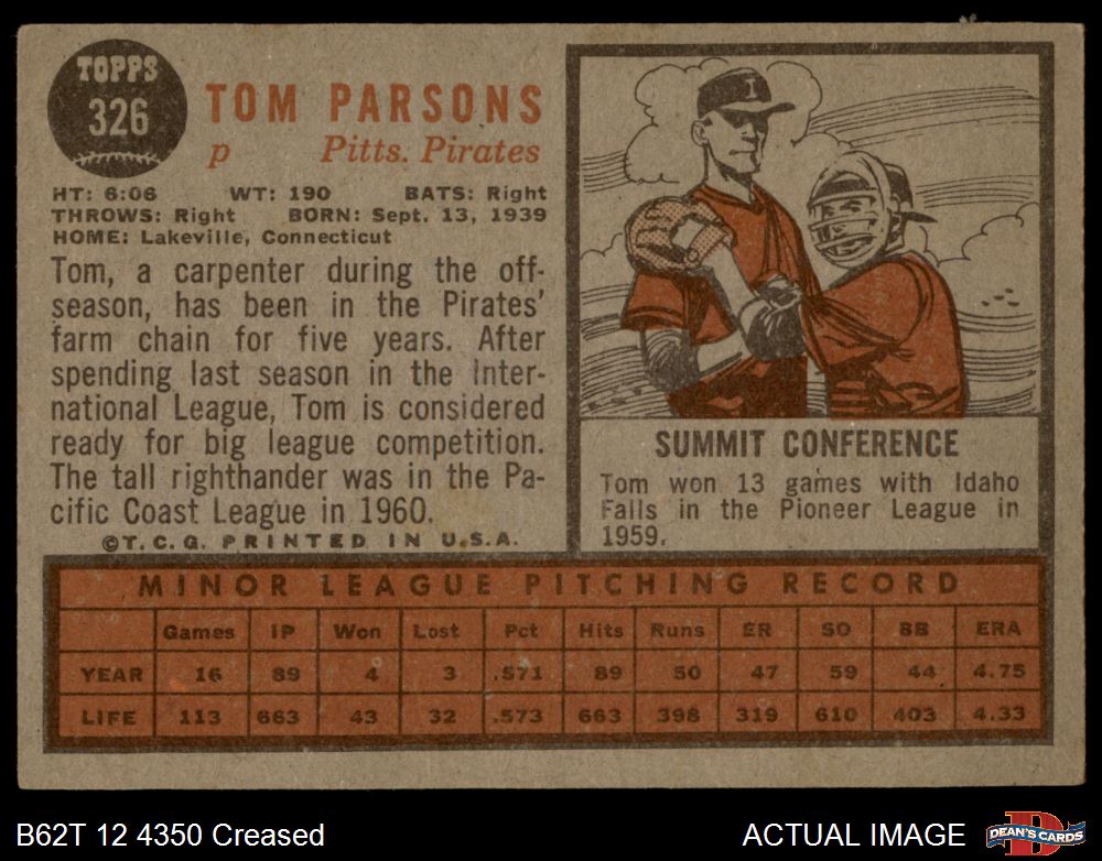 1962 Topps #326 Tom Parsons 2 - GOOD