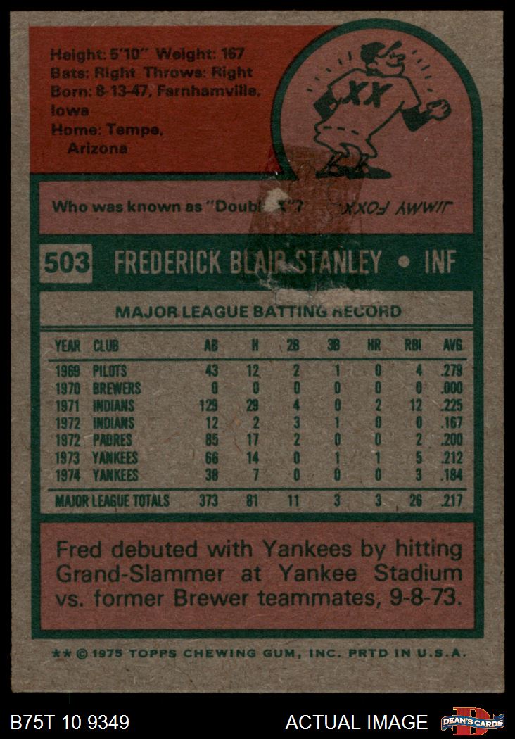 1975 Topps #503 Fred Stanley 1 - POOR