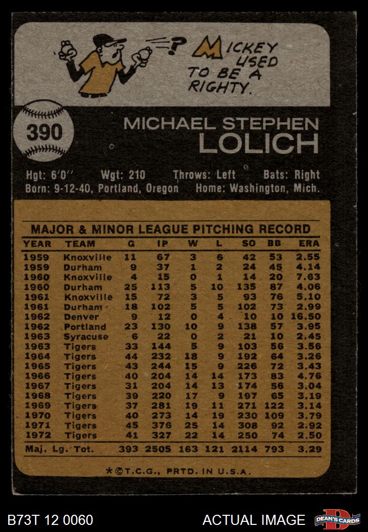 1973 Topps #390 Mickey Lolich 5 - EX