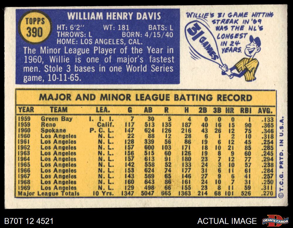1970 Topps #390 Willie Davis 4 - VG/EX