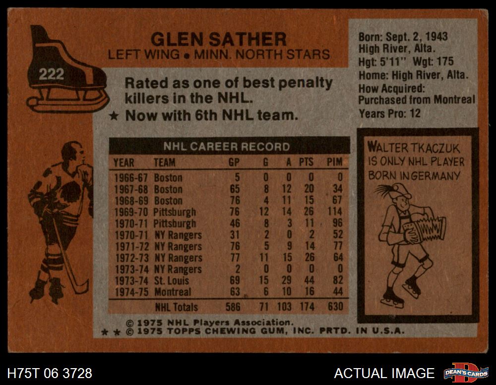 1975 Topps #222 Glen Sather 4 - VG/EX