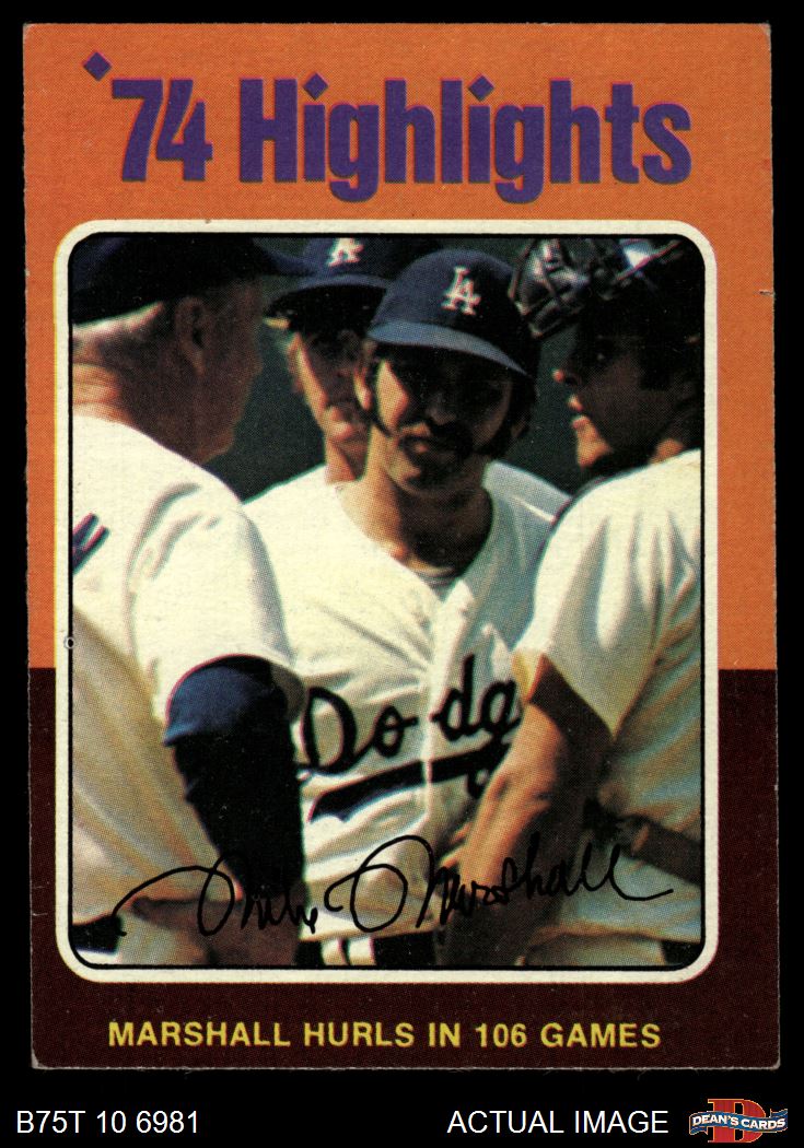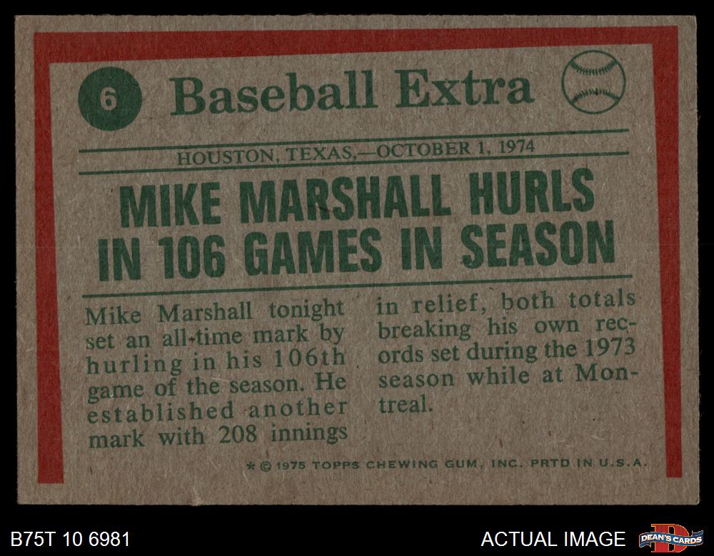 1975 Topps #6 - Mike Marshall Marshall Hurls In 106 Games 5 - EX