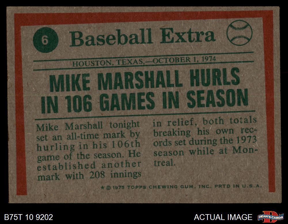 1975 Topps #6 - Mike Marshall Marshall Hurls In 106 Games 6 - EX/MT