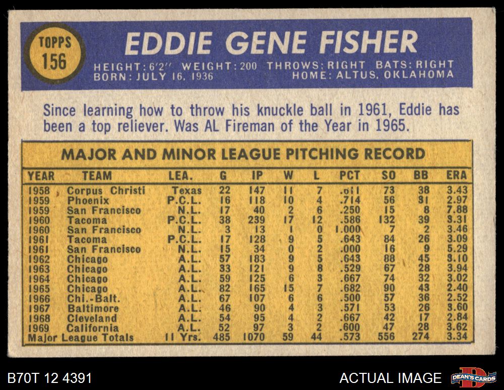 1970 Topps #156 Eddie Fisher 4 - VG/EX