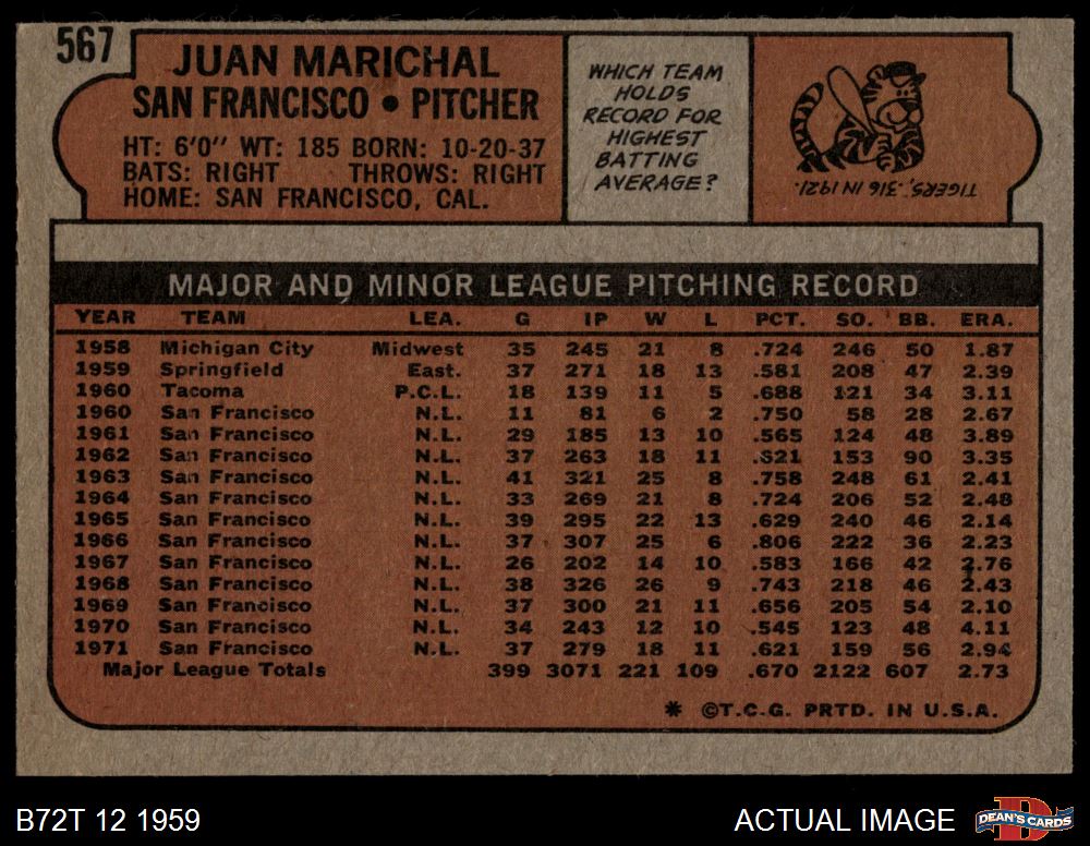 1972 Topps #567 Juan Marichal 4 - VG/EX