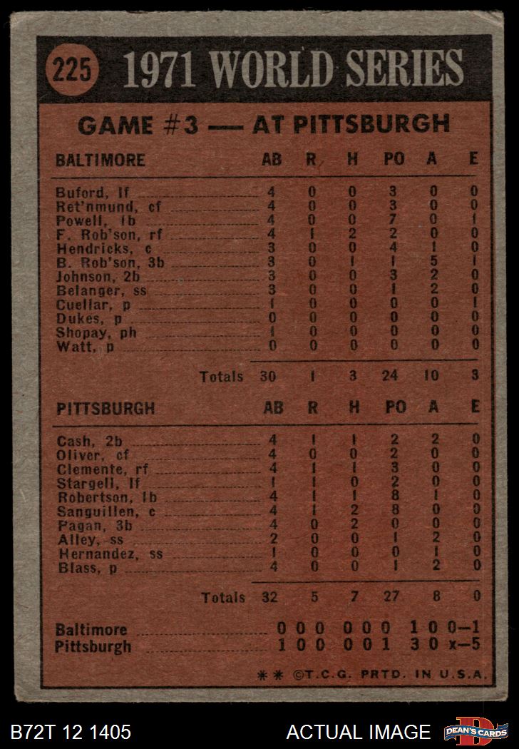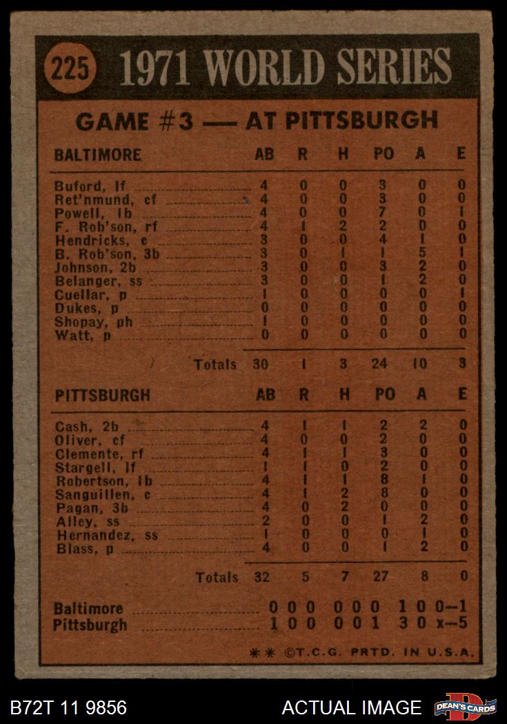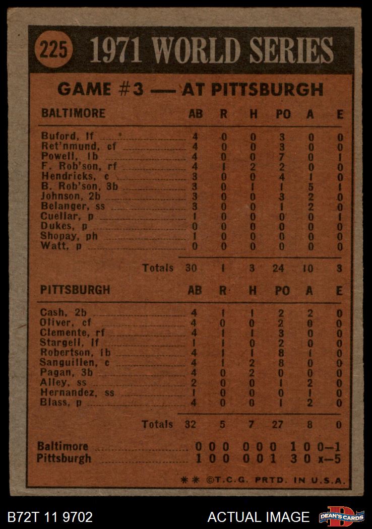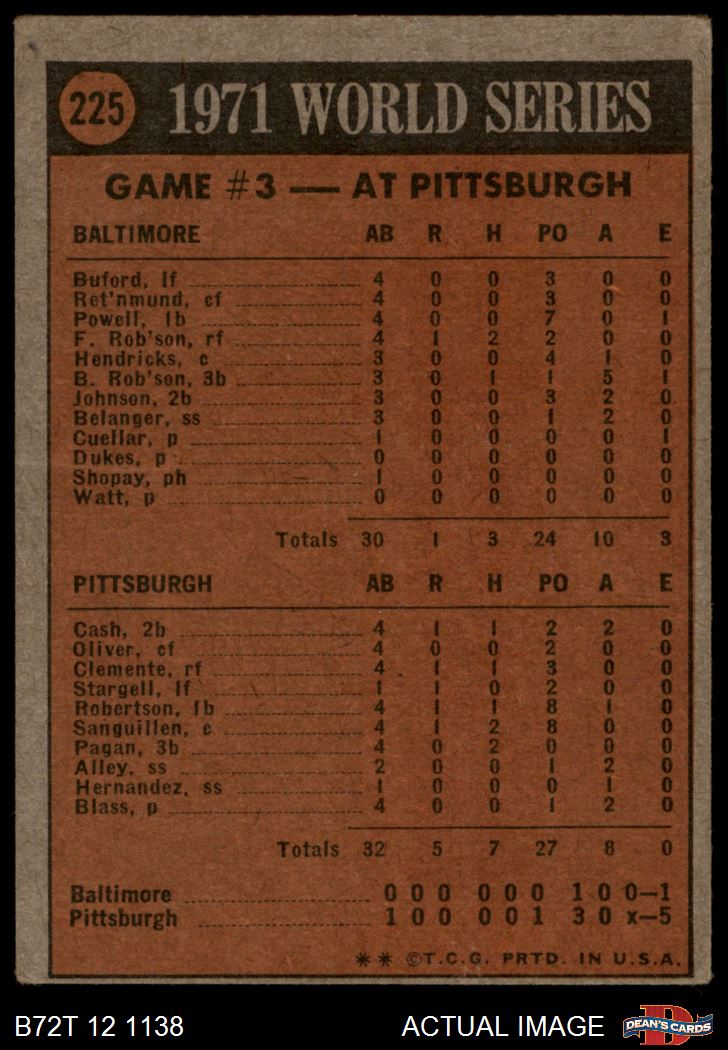 1972 Topps #225 - Manny Sanguillen 1971 World Series - Game #3 1.5 - FAIR