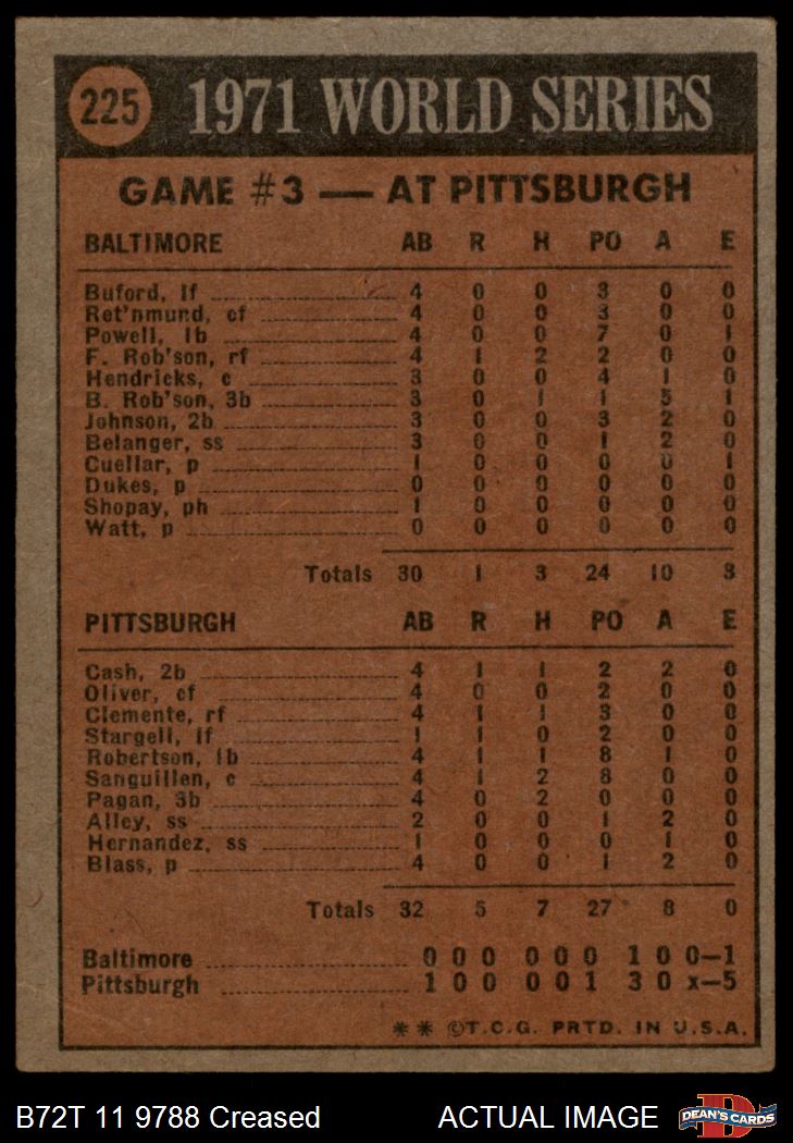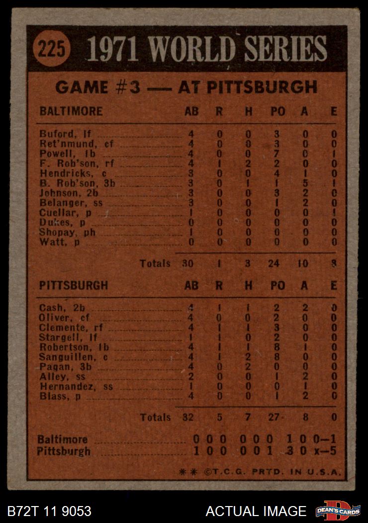 1972 Topps #225 - Manny Sanguillen 1971 World Series - Game #3 2 - GOOD