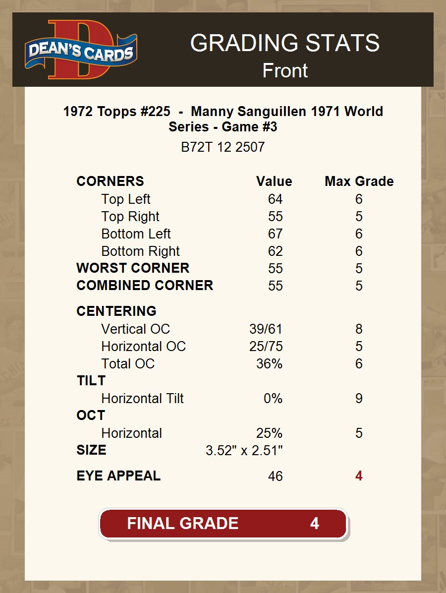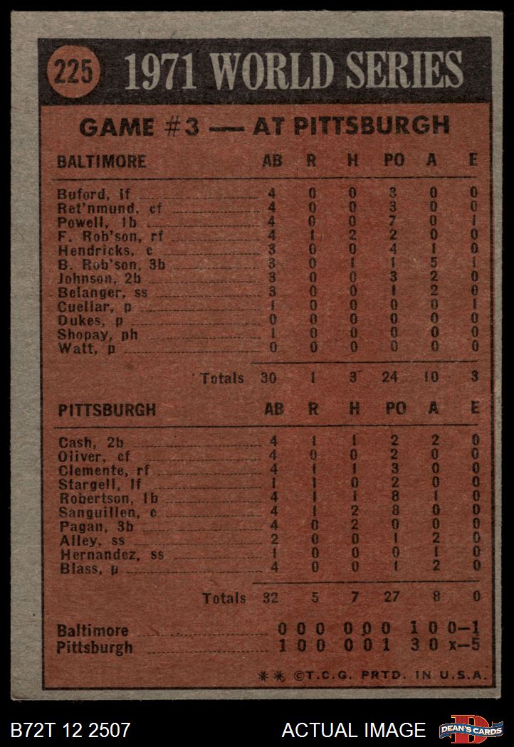 1972 Topps #225 - Manny Sanguillen 1971 World Series - Game #3 4 - VG/EX