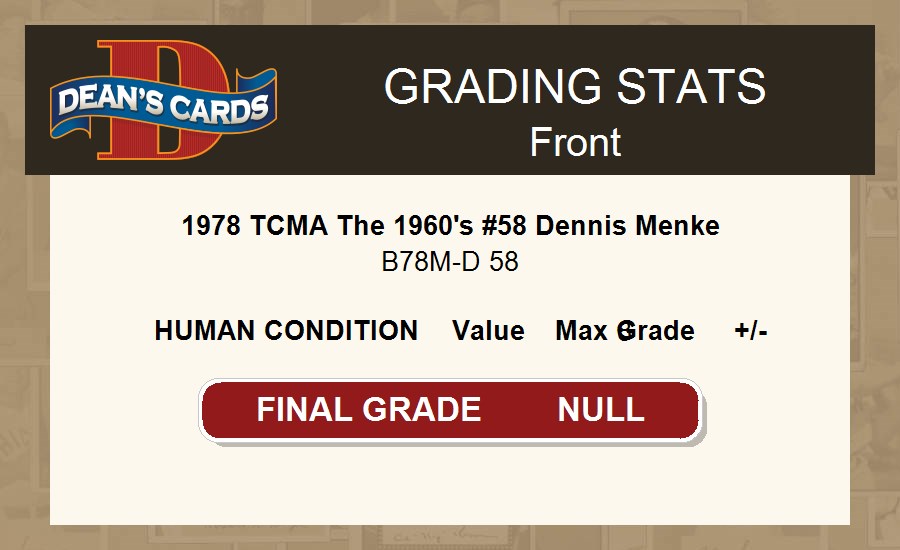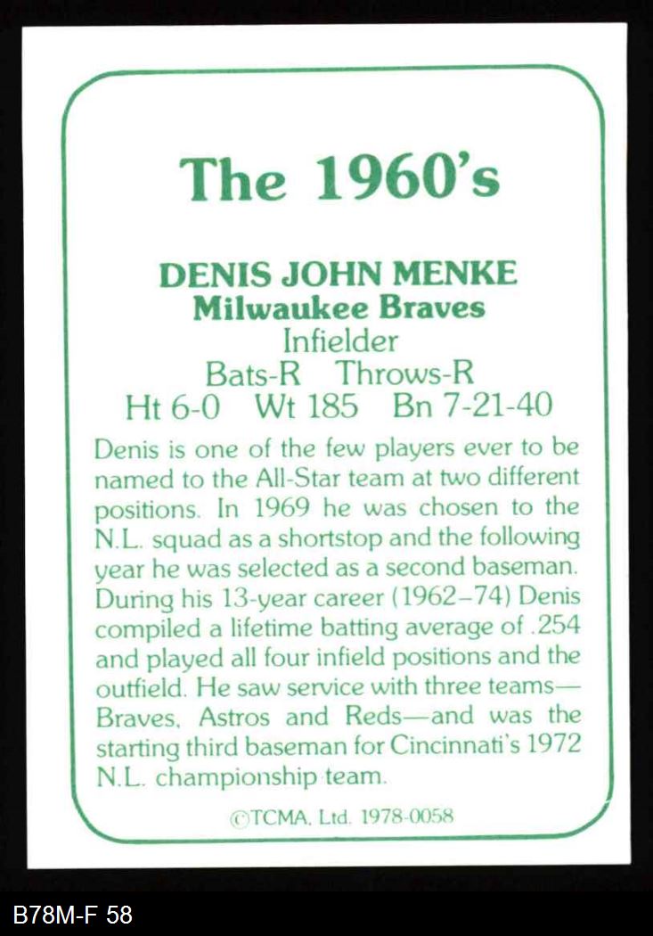 1978 TCMA The 1960's #58 Dennis Menke 8 - NM/MT