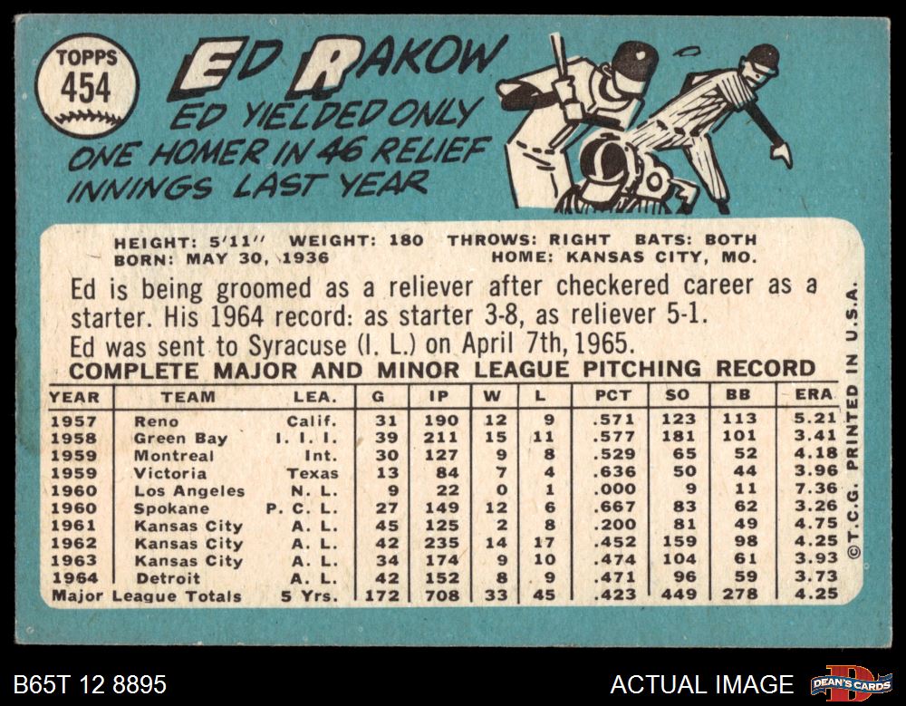 1965 Topps #454 Ed Rakow 2 - GOOD