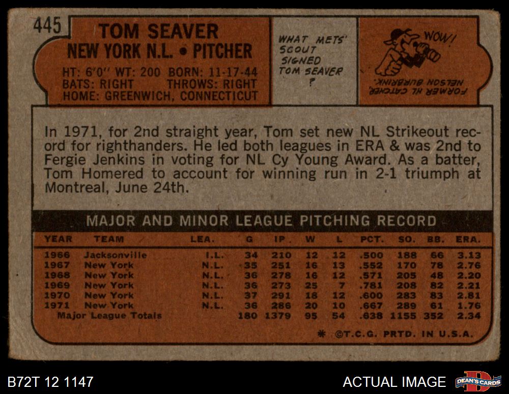 1972 Topps #445 Tom Seaver 1 - POOR