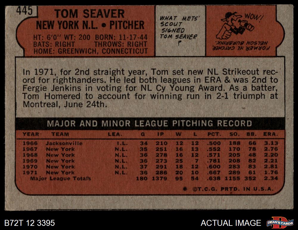 1972 Topps #445 Tom Seaver 1.5 - FAIR