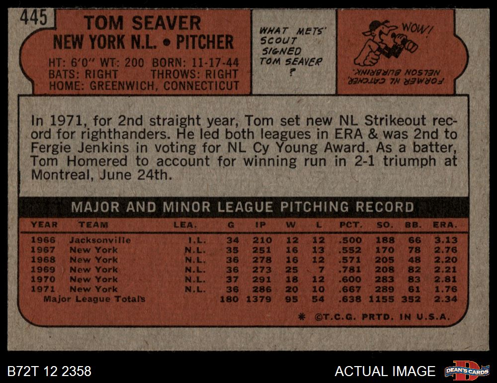 1972 Topps #445 Tom Seaver 3 - VG