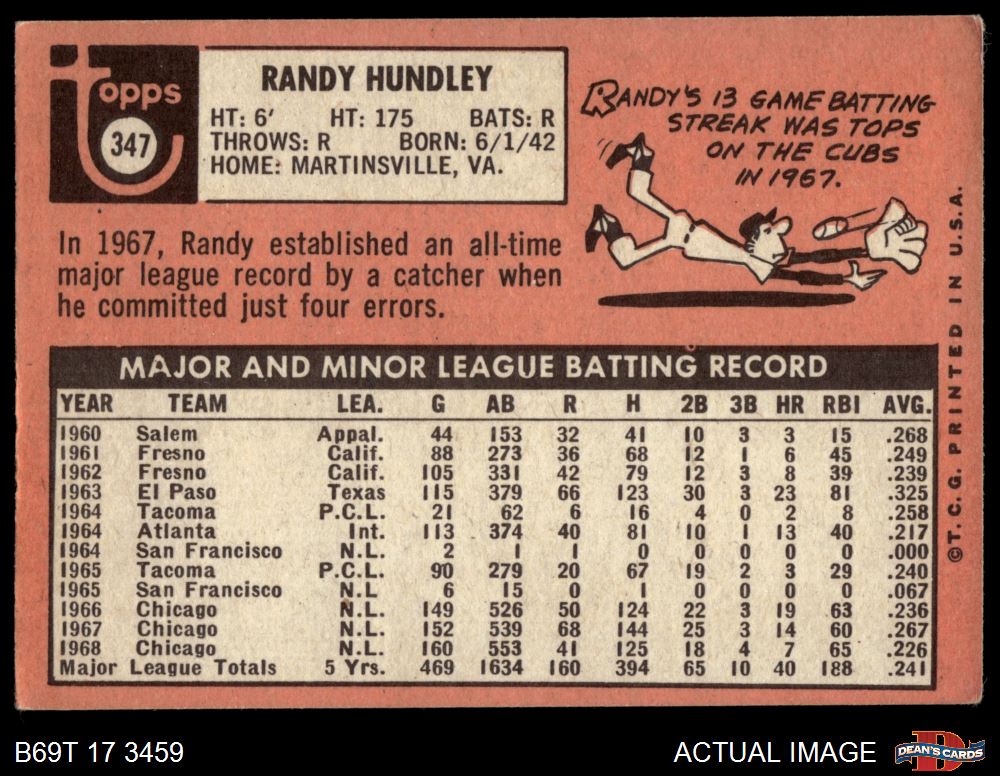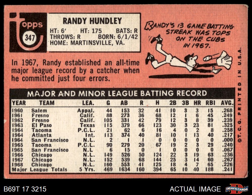 1969 Topps #347 Randy Hundley 2 - GOOD