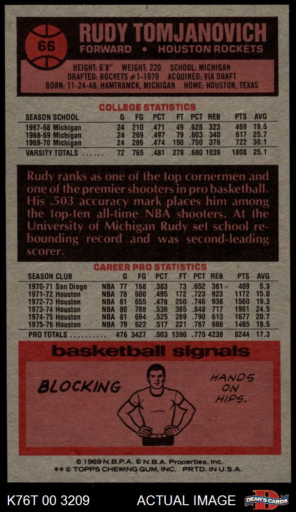 1976 Topps #66 Rudy Tomjanovich 7 - NM