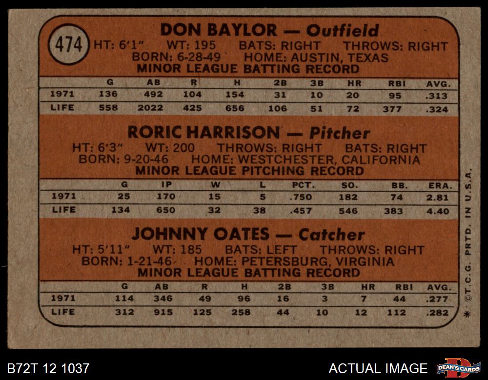1972 Topps #474 - Don Baylor / Roric Harrison / Johnny Oates Orioles Rookies 2 - GOOD