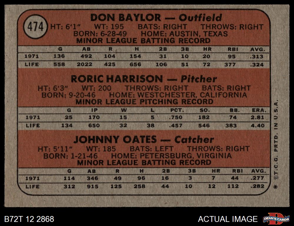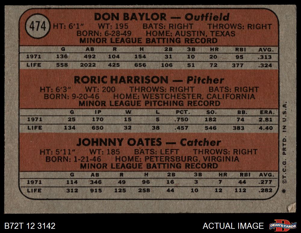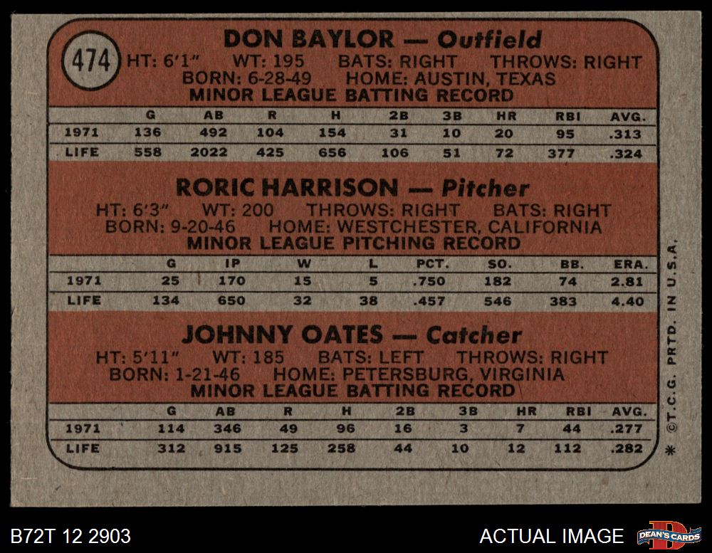 1972 Topps #474 - Don Baylor / Roric Harrison / Johnny Oates Orioles Rookies 4 - VG/EX