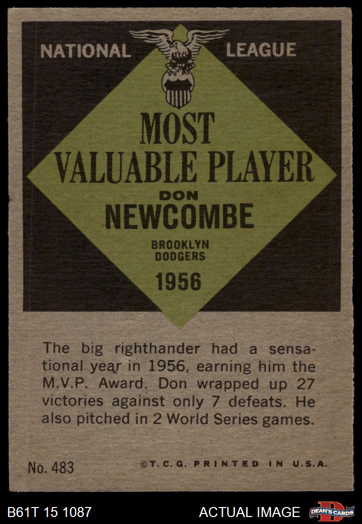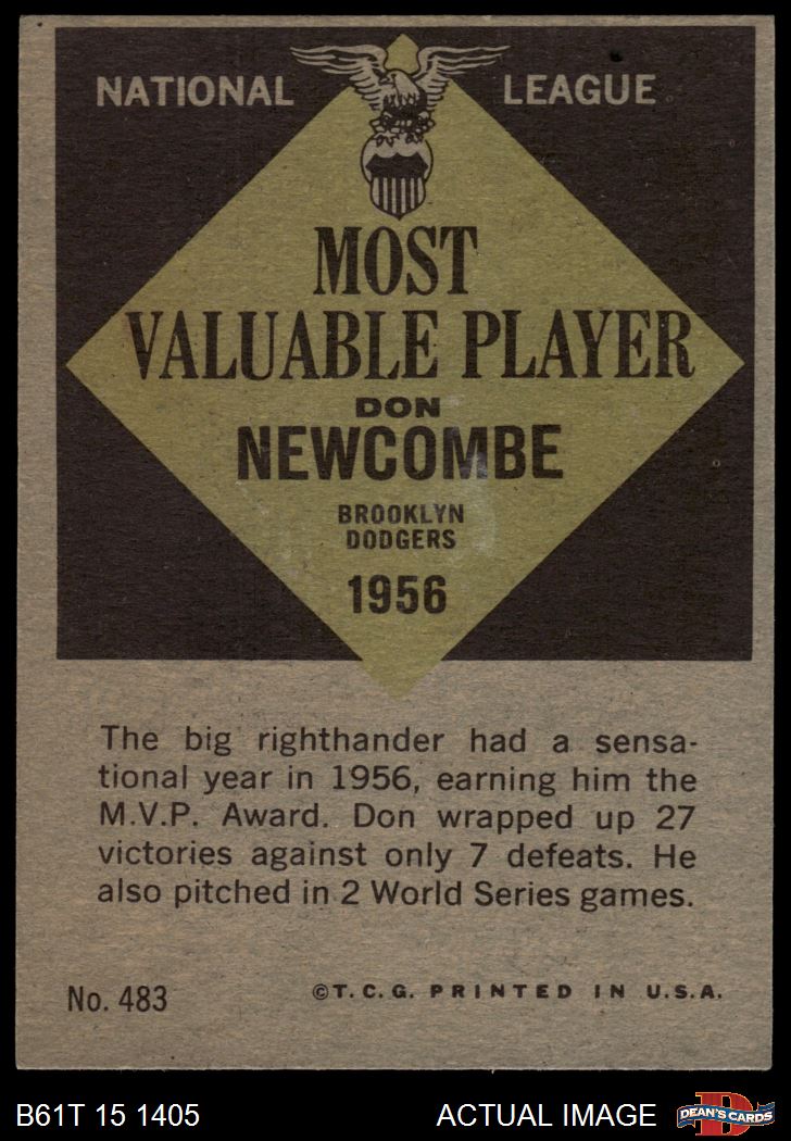 1961 Topps #483 - Don Newcombe Most Valuable Player 4 - VG/EX