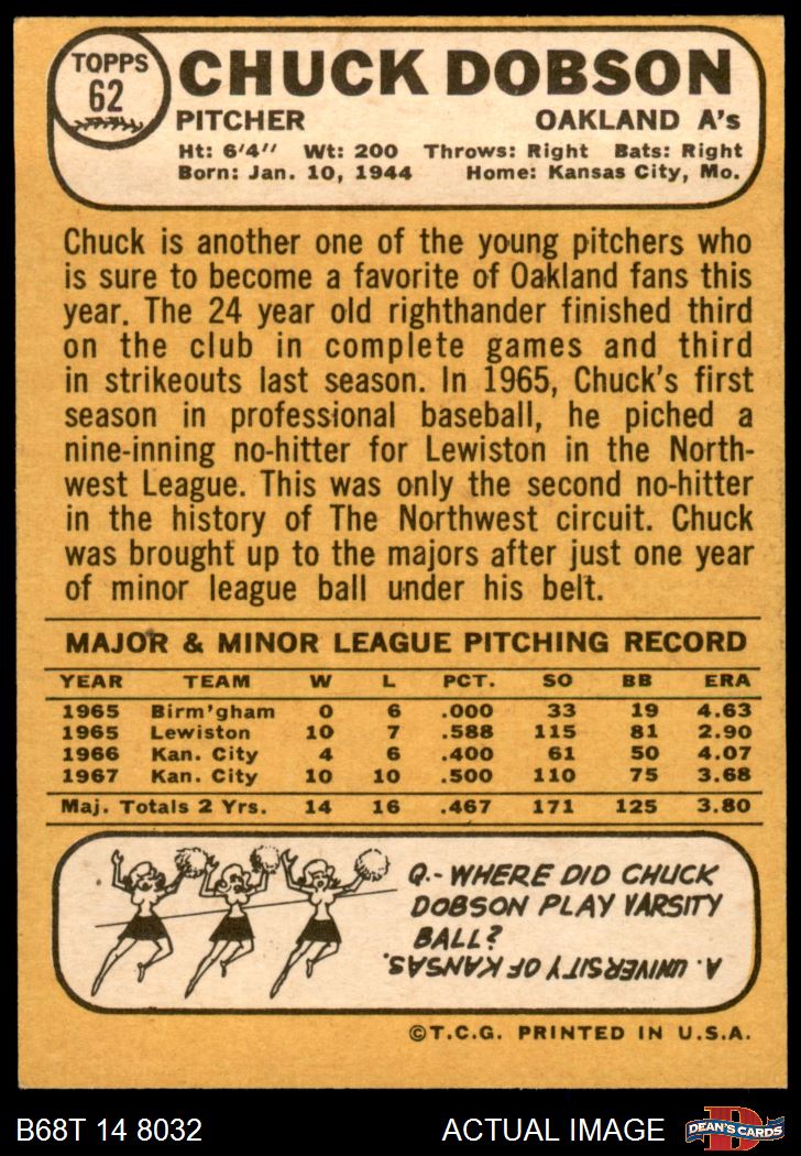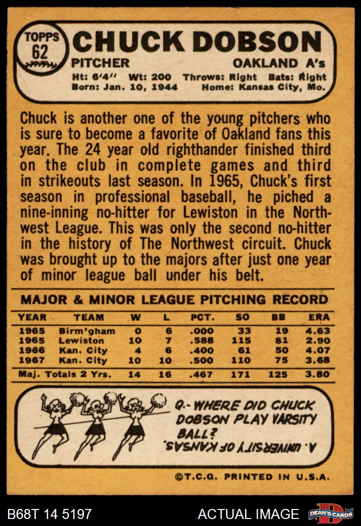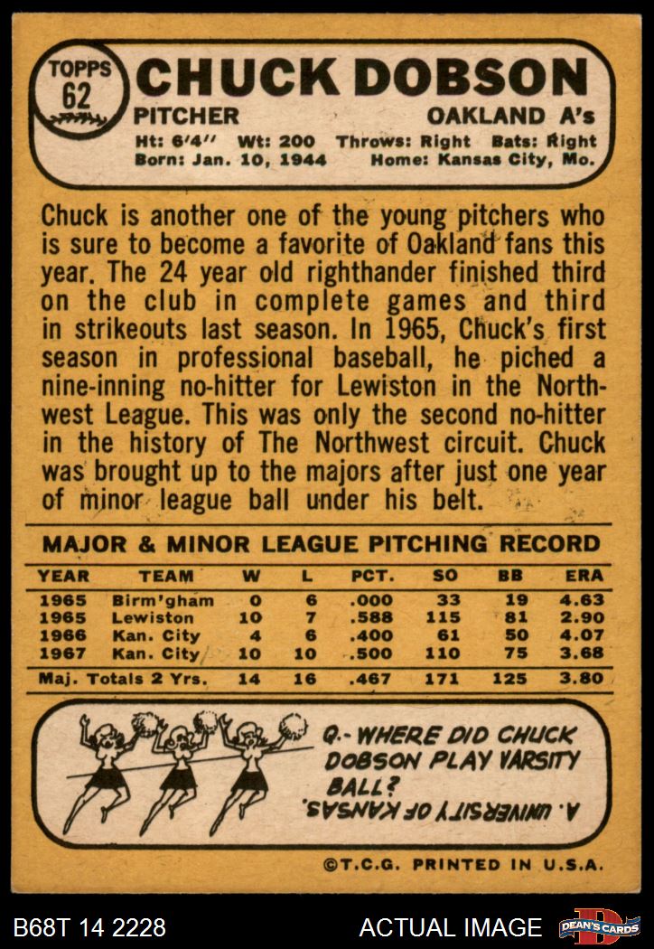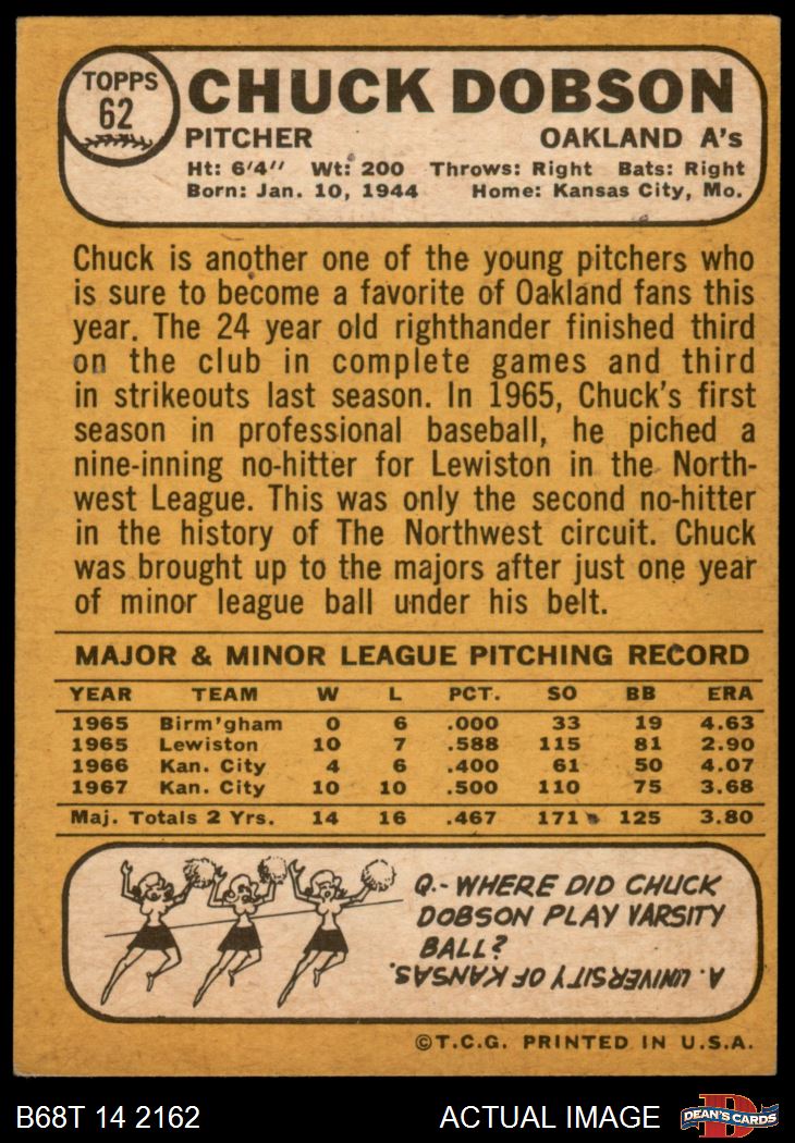 1968 Topps #62 A Chuck Dobson 6 - EX/MT