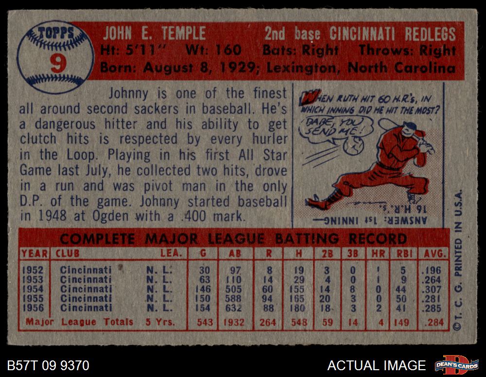 1957 Topps #9 Johnny Temple 4.5 - VG/EX+