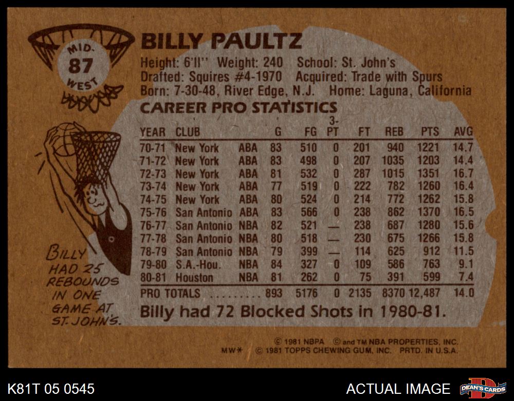 1981 Topps #87 MW Billy Paultz 7 - NM
