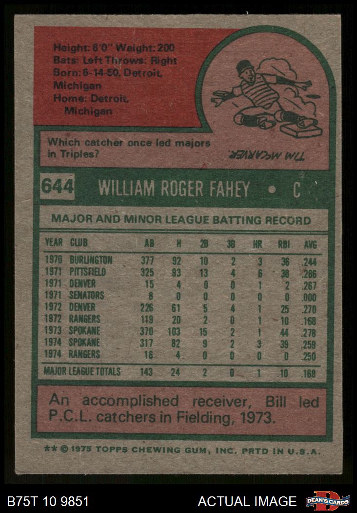 1975 Topps #644 Bill Fahey 6 - EX/MT