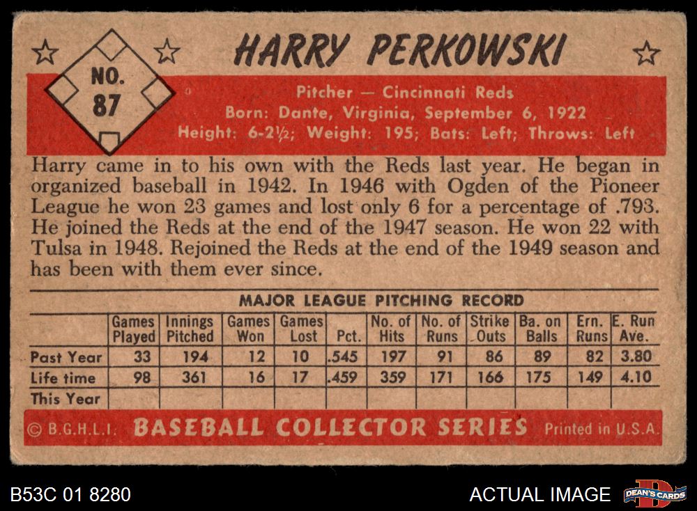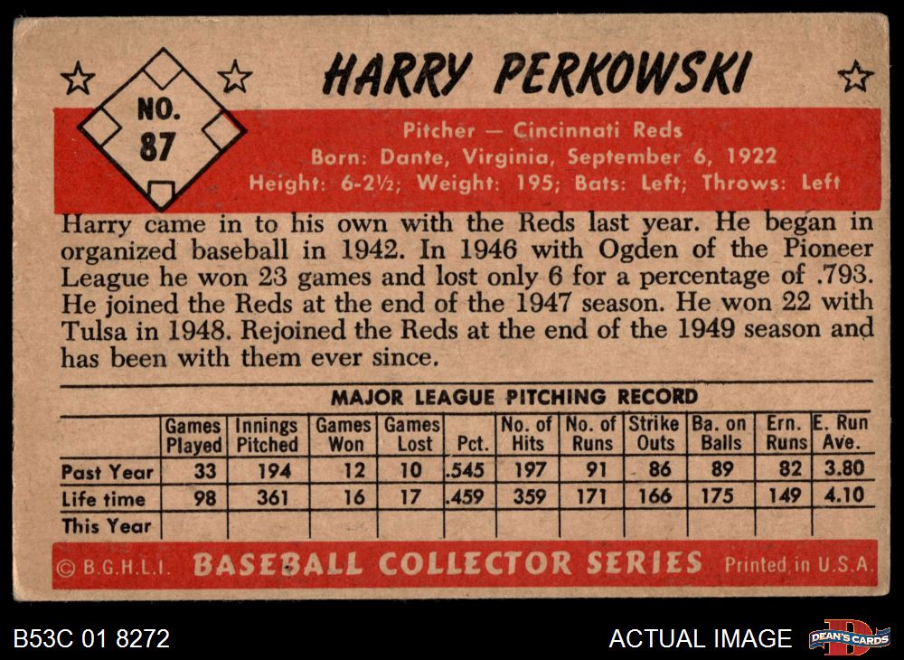 1953 Bowman #87 Harry Perkowski