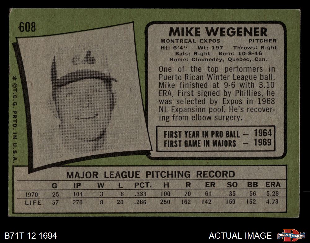 1971 Topps #608 Mike Wegener