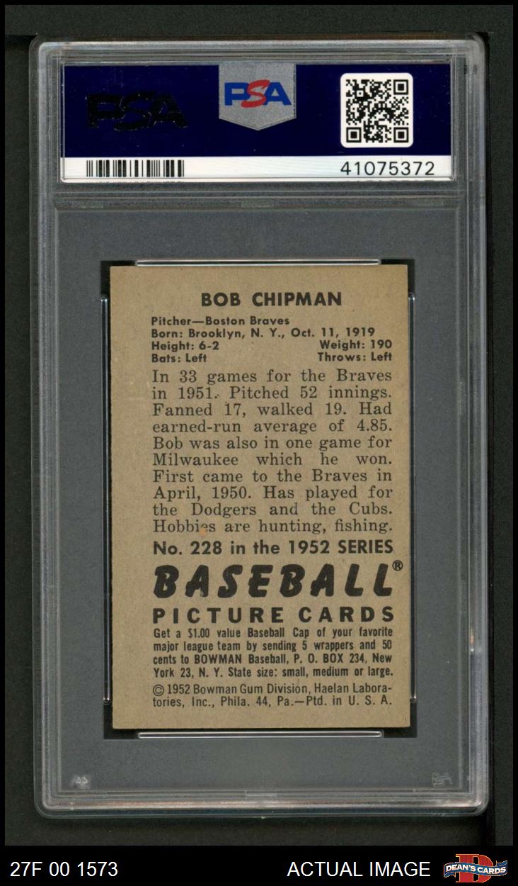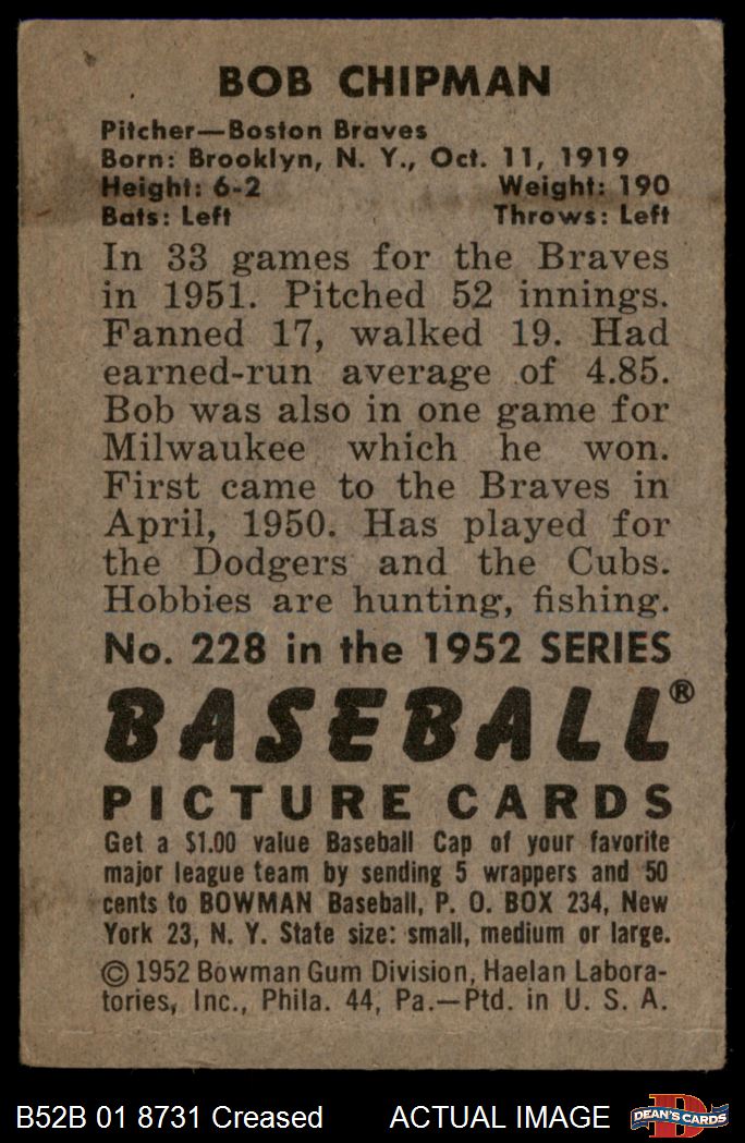 1952 Bowman #228 Bob Chipman