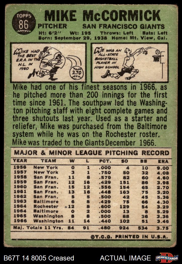 1967 Topps #86 TR Mike McCormick Front Thumbnail