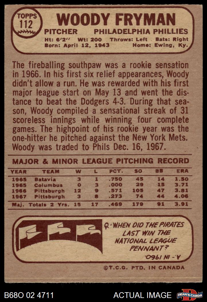 1968 O-Pee-Chee #112 Woody Fryman