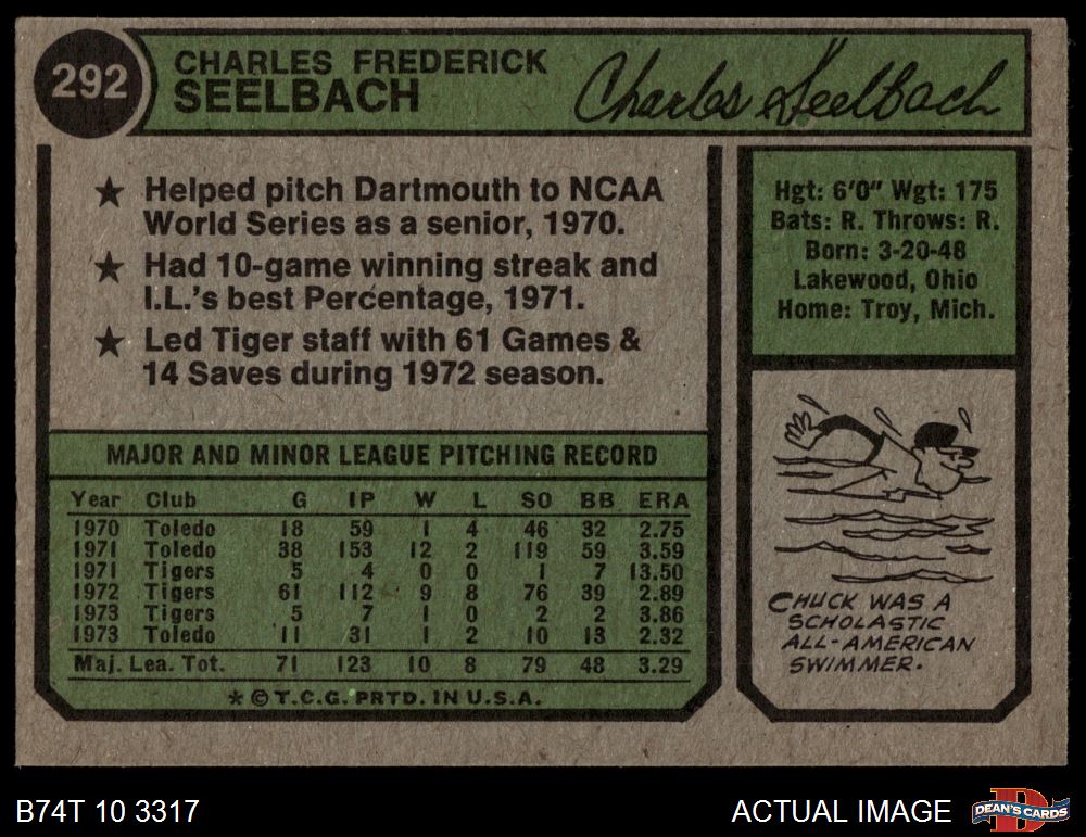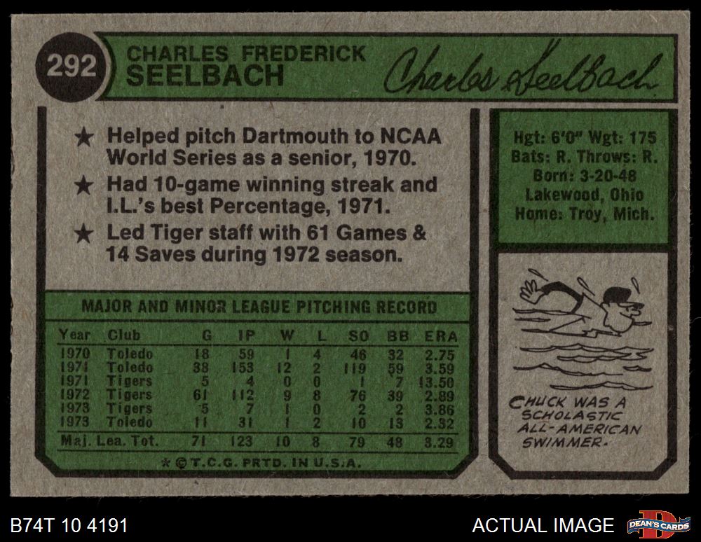 1974 Topps #292 Chuck Seelbach