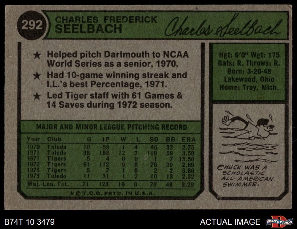 1974 Topps #292 Chuck Seelbach 4.5 - VG/EX+