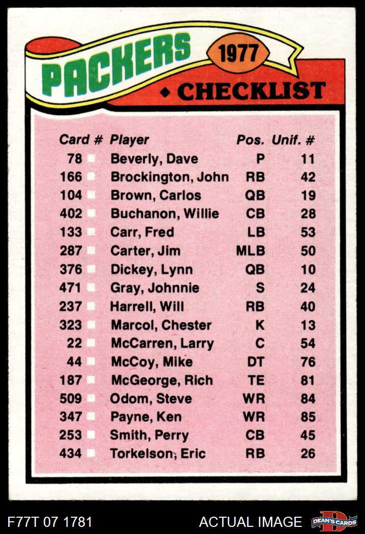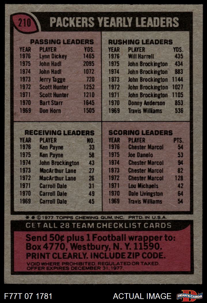 1977 Topps #210 Packers Team Checklist 5 - EX