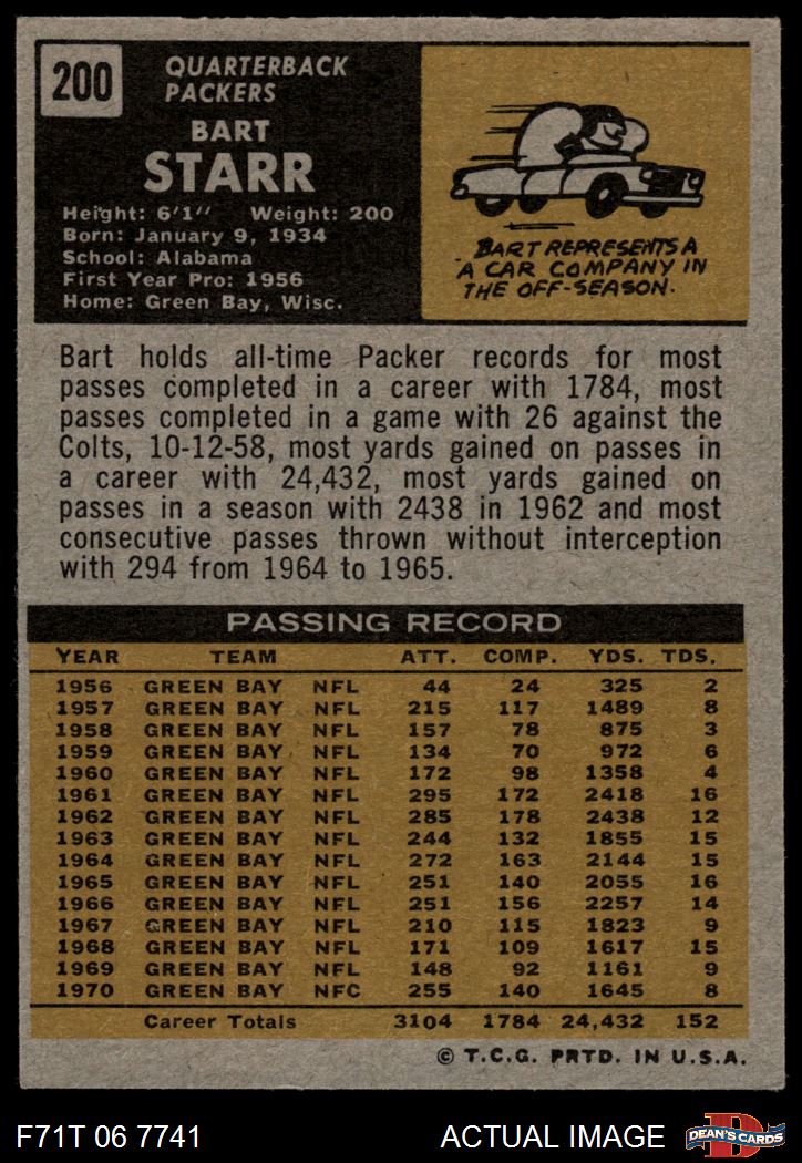 1971 Topps #200 Bart Starr