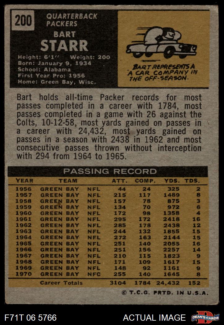 1971 Topps #200 Bart Starr 3 - VG